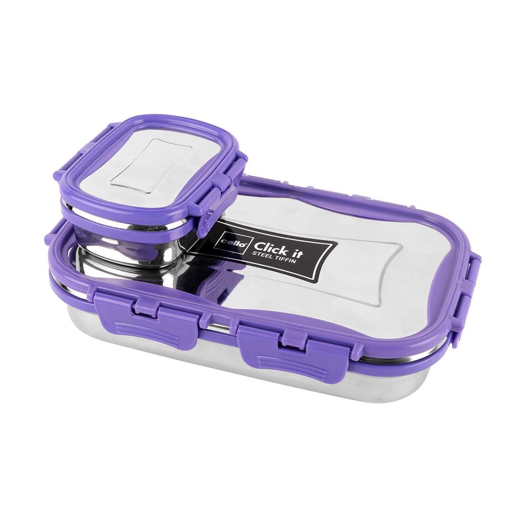 Isolierte Edelstahl-Lunchbox für Büro- oder Schulgebrauch mit Gemüsefach und auslaufsicherem Verschluss – Langlebige violette Tiffin für Erwachsene und Kinder