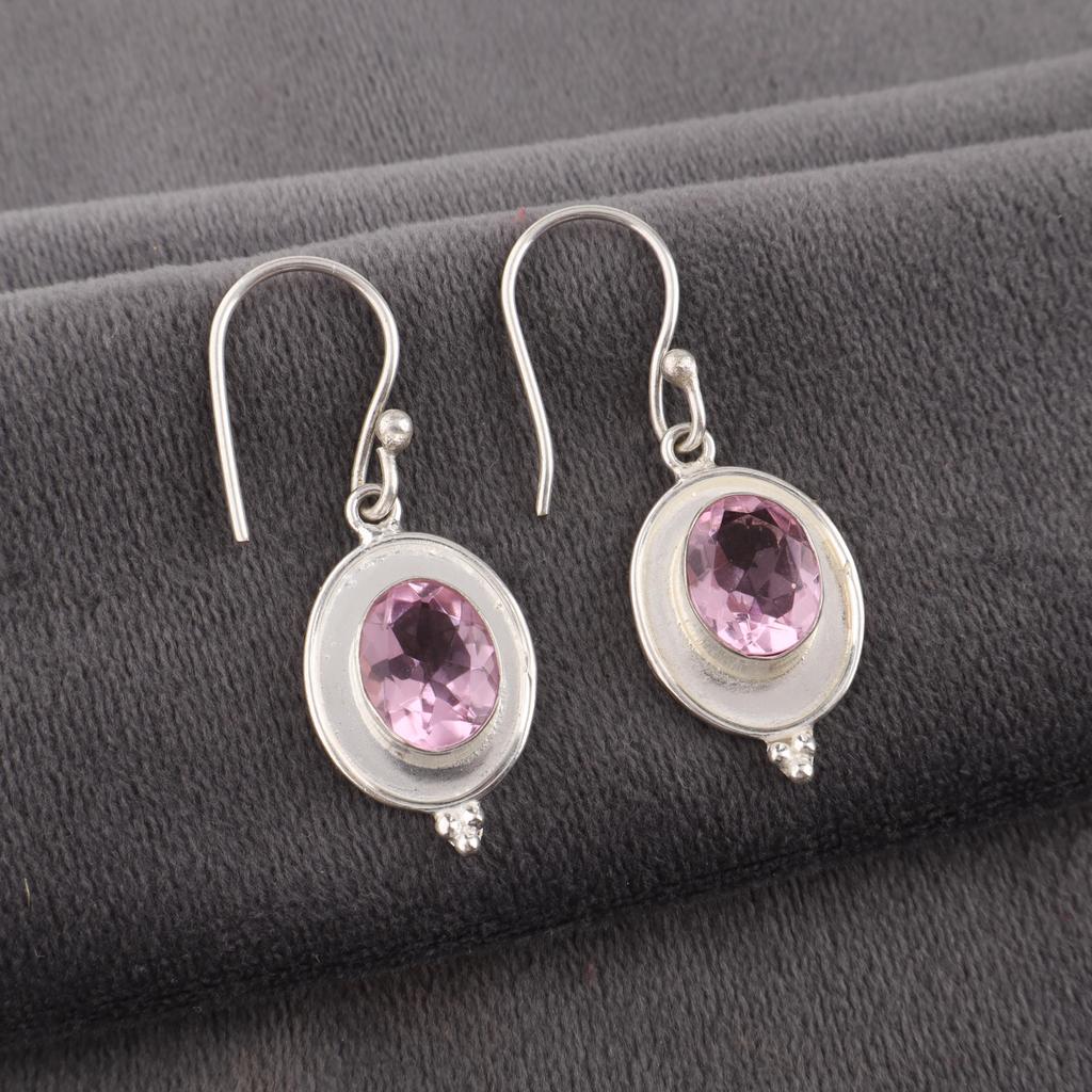 Morganit Edelstein Schmuck, 925 Sterlingsilber Ohrringe, Handgefertigte Funkelnde Silberohrringe, Geschenk für Frauen