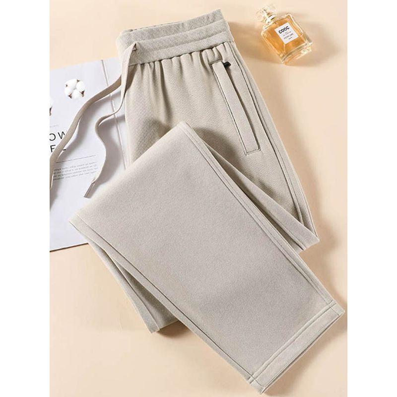 Pure Cotton Apricot Casual High Waist plus Size Straight Sports Pants