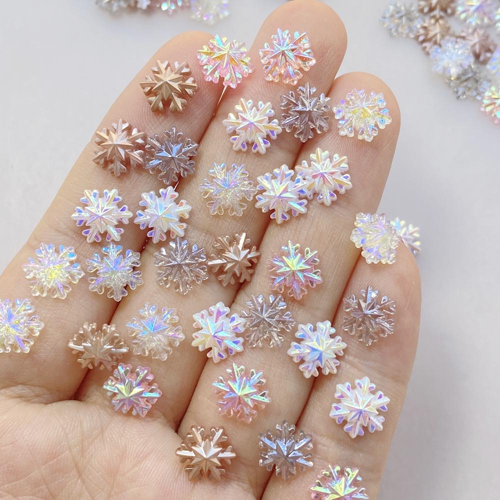 50 Stück Niedliche Cartoon Mini Farbige Schneeflocken Nailart Harz Designer Charms DIY Basteln Für Nagel 3D Dekorationen Schmuck