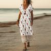 Sommerkleid Damen Langes Boho Strandkleid Elegantes Maxikleid V-Ausschnitt Kurzarm Sommer Tunikakleid Leicht Luftig