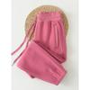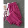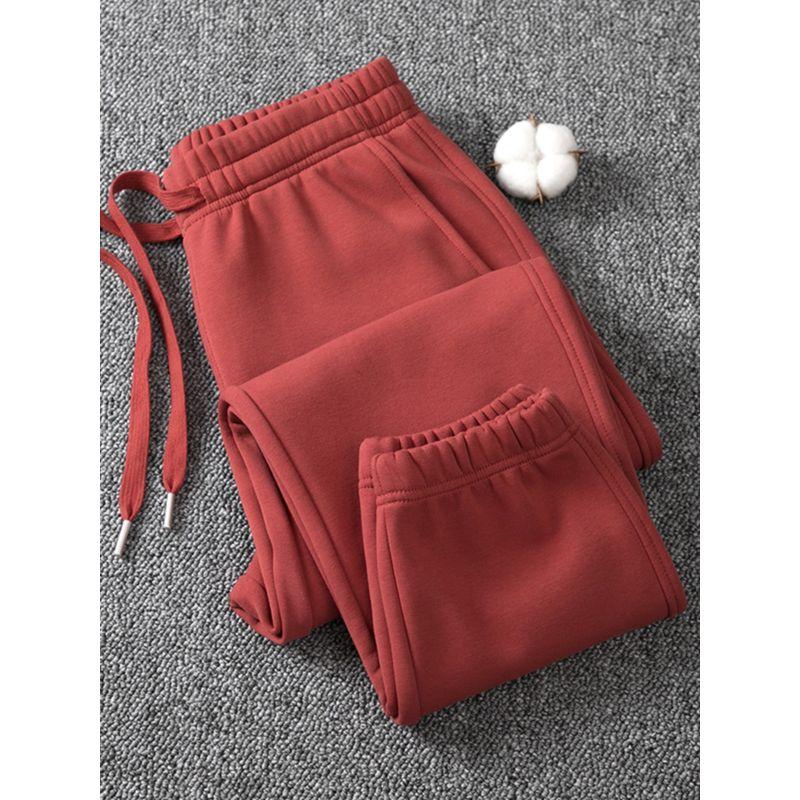 Spring Red Pure Cotton Casual Female Winter Fleece-Lined Track Pants