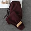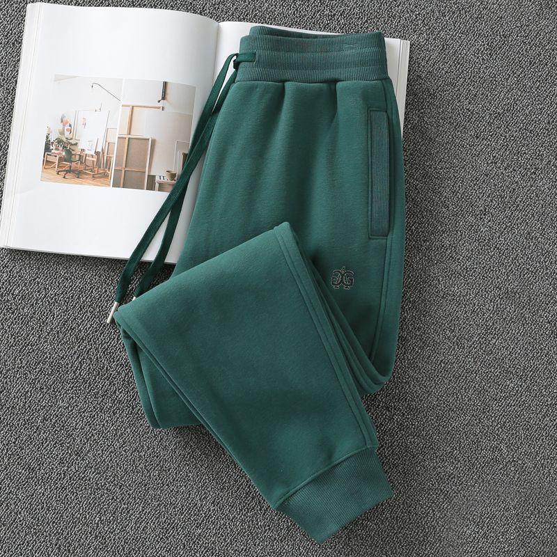 Retro Dark Green Winter Fleece-Lined Casual Slimming Sweatpants