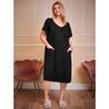 YYFS Women's Fashion Solid Color Print Summer Spring Short Sleeve O-Neck Loose Waistline Casual Dresses