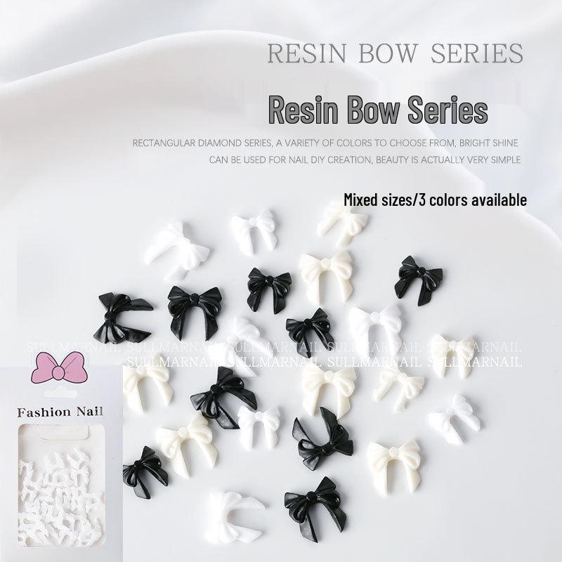 3D Schwarz-Weiß Harz Schleife Nagelkunst Dekorationen (30 Stück)