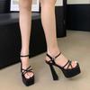 Damen Ultra-hochhackige Dickhackige Wasserdichte Plateau Sandalen mit eckiger Spitze aus Satin mit Ein-Wort-Schnalle