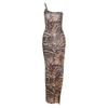 Sexy Damen Sommerkleid Spaghettiträger U-Boot-Ausschnitt Slim Tigerdruck Khaki Seitenschlitz Damenkleid