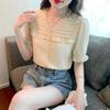 Women's Clothing Summer Fashion Ruffle Lace Patchwork Blouse Elegant Sweet Chic Shirt Casual Solid V Neck Short Sleeve Tops