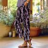 Damen Modische Hose mit Blumenmuster, gerades Bein, Tasche, elastischer Bund, lässige Hose