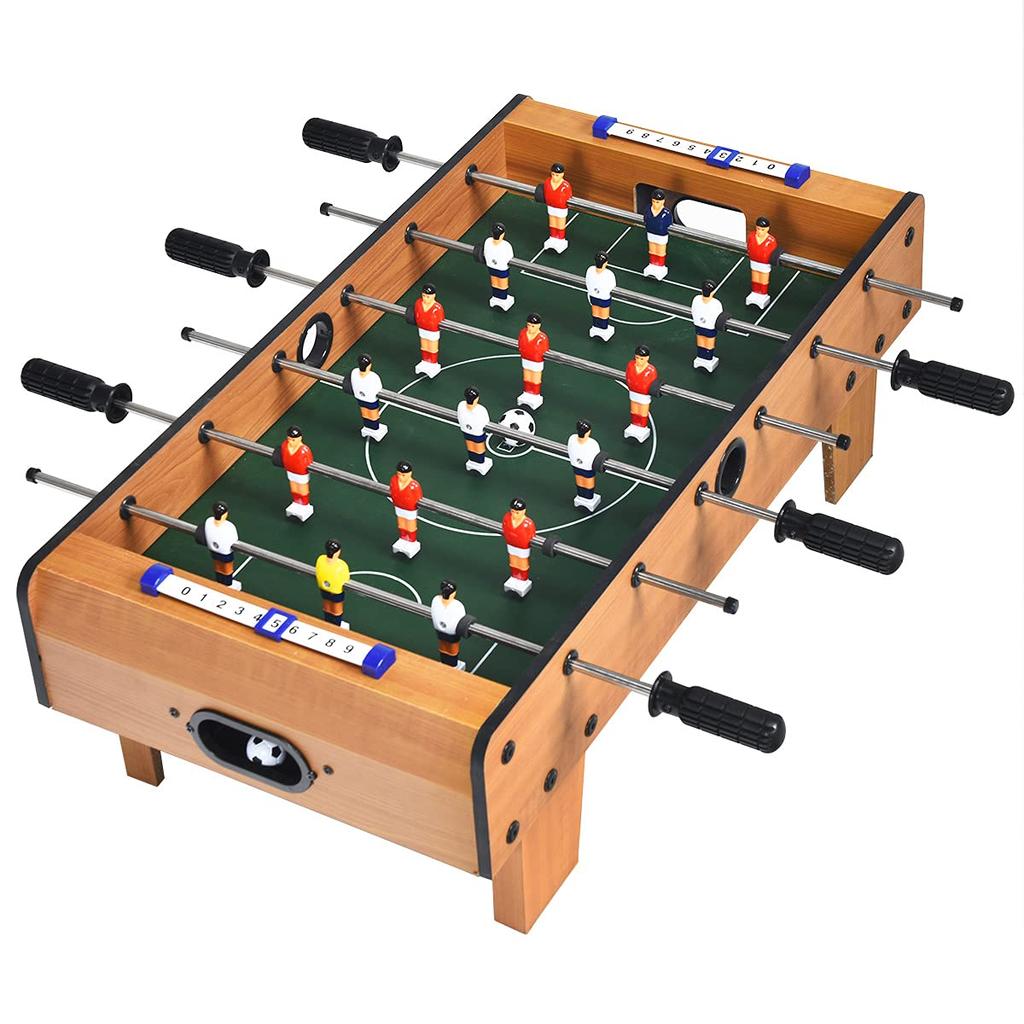 Genießen Sie ein Tischfußballspiel mit Ihrer Familie und Ihren Freunden! ▲▲▲▲▲Eigenschaften▲▲▲▲▲▲ Voll ausgestattet, spielbereit Kommt mit 18 Spielern, 2 Bällen und 2 Punktezählern. Sie können sofort ein 2-Spieler-Match starten. Hochwertige Materialien, ausgezeichnete Stabilität Hergestellt aus mitteldichter Faserplatte, mit 4 höhenverstellbaren Füßen für zusätzliche Stabilität und Haltbarkeit. Einfach für jeden zu genießen Die Regeln sind einfach, sodass jeder spielen kann, unabhängig von Alter oder Geschlecht. Verbessern Sie Ihre Hand-Auge-Koordination und vertiefen Sie die Bindung zu Ihrer Familie und Ihren Freunden. Kompaktes Design, leicht zu tragen Das leichte und kompakte Design macht es einfach, es zu verstauen und überallhin mitzunehmen, z. B. beim Camping oder auf Partys.. Einfach zu montieren, spielbereit Alle Teile sind in der Box enthalten und können leicht zusammengebaut werden, sodass Sie das Spiel sofort genießen können.
