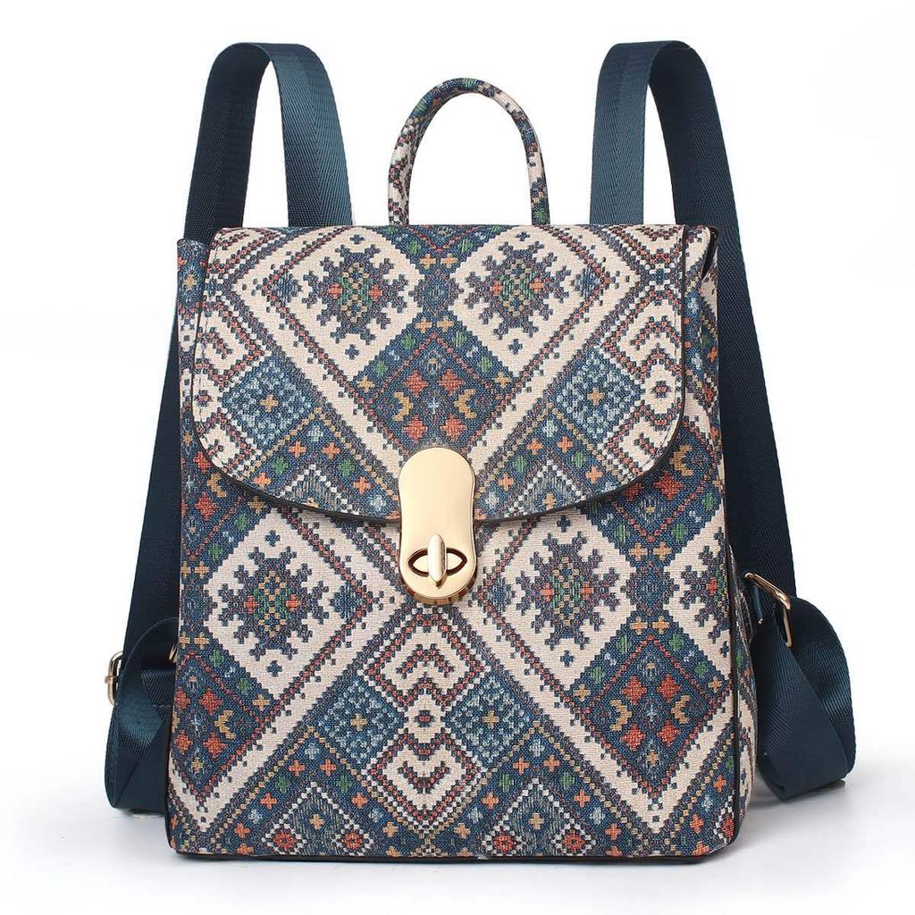 Damen neuer ethnischer Stil Mode Retro Karomuster Trend Senior Sense von weich langlebig Pendler große Kapazität Schulterhandtasche Rucksäcke