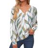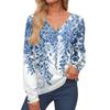 Damenoberteile Langarmmanschetten Button-Up-Hemd V-Ausschnitt Lässiges Lockeres T-Shirt Blumenoberteile