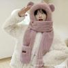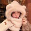 Bear plush hat scarf integrated women's winter cute autumn and winter three-piece set winter warm new