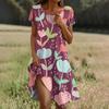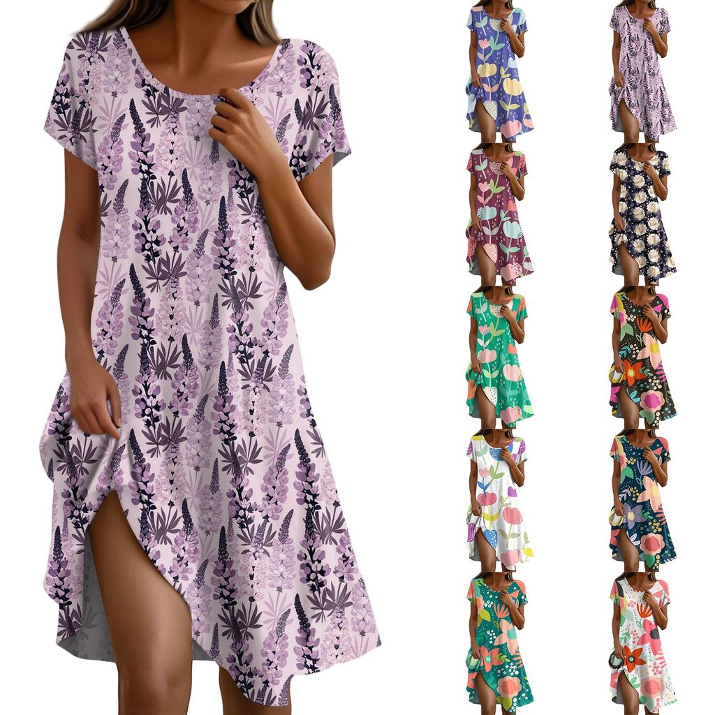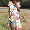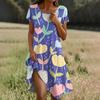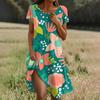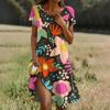 Kurzärmeliges Boho-Kleid für Damen, lässig, lockere Passform, Sommerkleid mit Blumendruck und Taschen