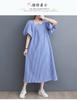 Real shot summer new literary loose cotton and linen plaid square neck short-sleeved dress women's medium and long