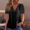 Sommer Einfarbig Kurzarm V-Ausschnitt Lockeres Oberteil mit Wollkugel Spleiß Chiffon Elegant Damenblusen & Hemden