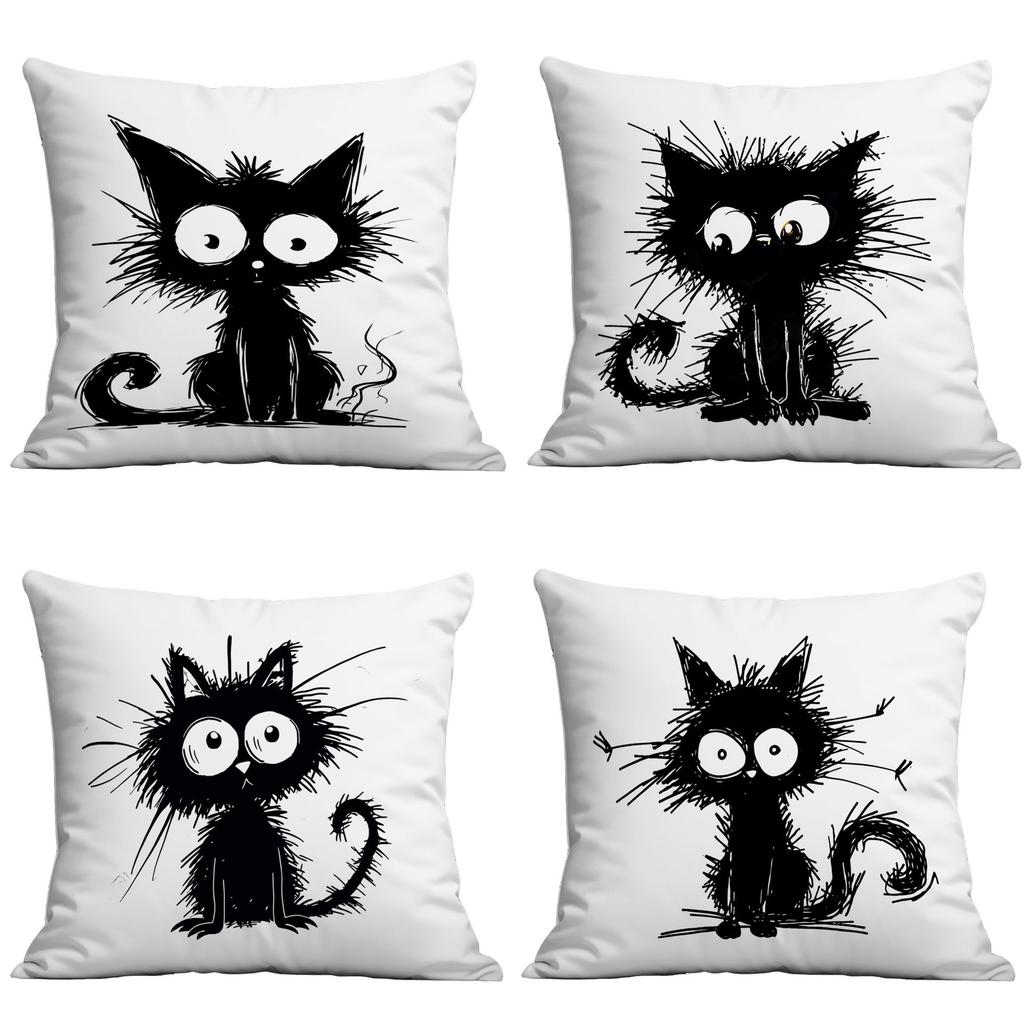 Neue Cartoon-Linien Schwarze Katze Einfacher bedruckter Kissenbezug Zuhause Sofa Kissenbezug