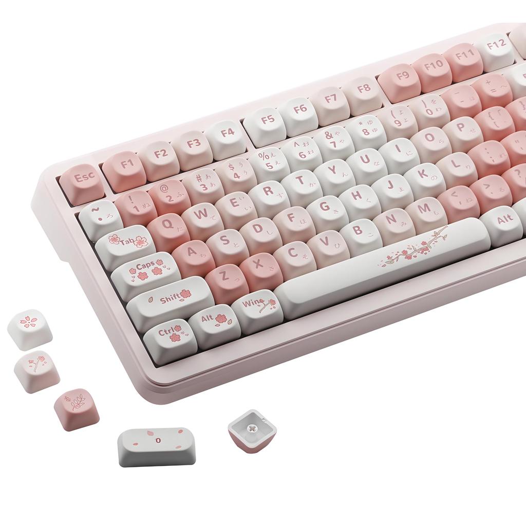 134 Key PBT Japanese MOA Profile Sakura Pink Dye Sublimation Keycaps for MX Switches Mechanical Gaming Keyboard Keycaps, Theme, 5-Side
