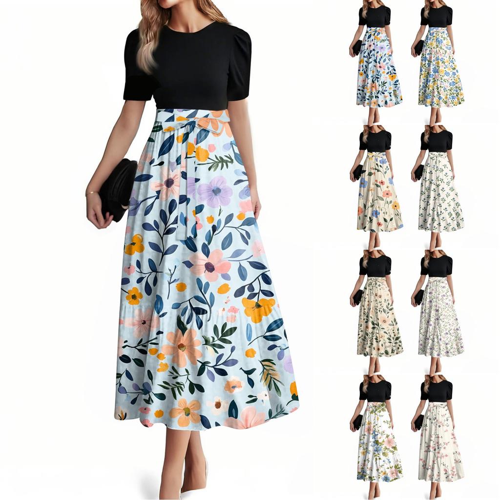 Damenmode Lässig Gürtel Kurzarm Rundhals Nähte Elegant Temperament Kleid