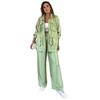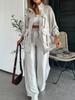 Damen Hellgrauer Anzug Set mit Weitbeiniger Hose, Stehkragenjacke, Weißem Crop Top, Lässige Bürokleidung