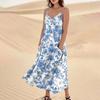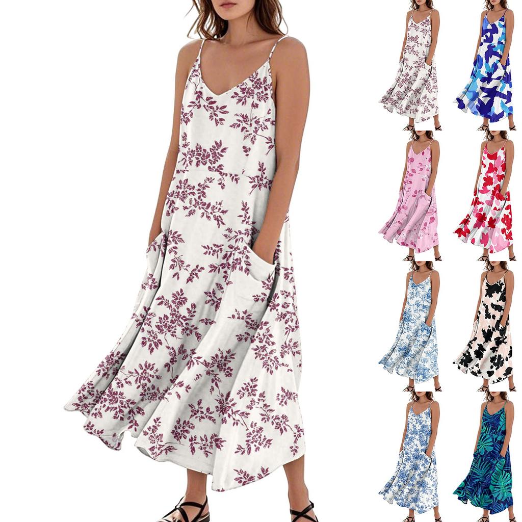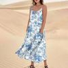 Damenmode Lässig Ärmellos Tasche Langes Strandkleid mit Blumendruck