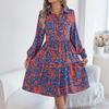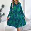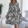 Women's Summer Fashion Printed Lapel Button Loose Long Sleeved Shirt Dress
