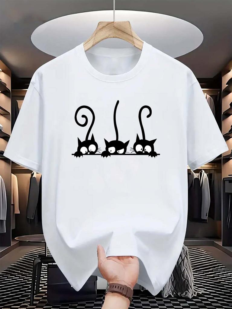 Sommer Modisch Lässig Sportlich Locker Herren T-Shirt Persönlichkeit Katzenmuster Gedruckt Rundhals Kurzärmliges Oberteil
