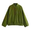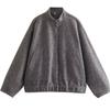 Damen Casual Loose Stehkragenjacken Frühling Warm Grau Knopf Langarm Bomber Mode Plüsch Solide Weibliche Oberbekleidung