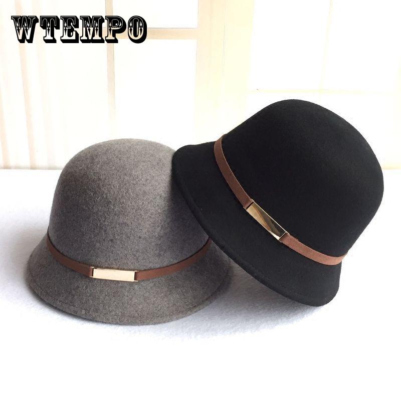 Ladies Wool Top Hat Leather Decoration Fashion Woolen Small Basin Hat Black Hat