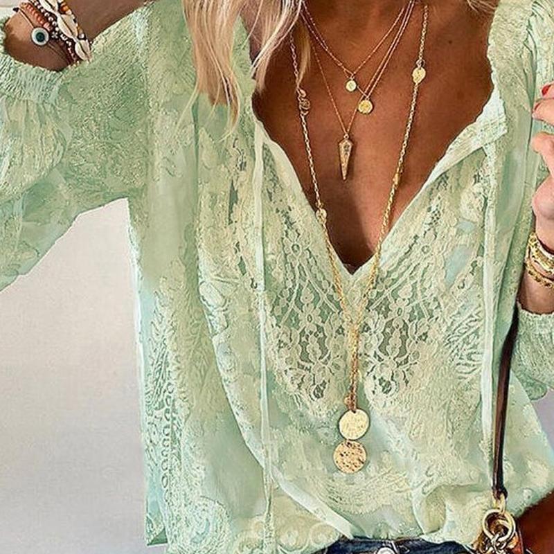 Bedruckter Spitzenpullover Temperament Pendler locker sitzende Bluse Damen, elegantes Damen V-Ausschnitt Stitching Langarm T-Shirt0303
