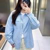Ein kariertes Nischenhemd für Damen mit Sonnenschutz, ein dünnes und lockeres trendiges Langarmhemd für Frühling und Sommer