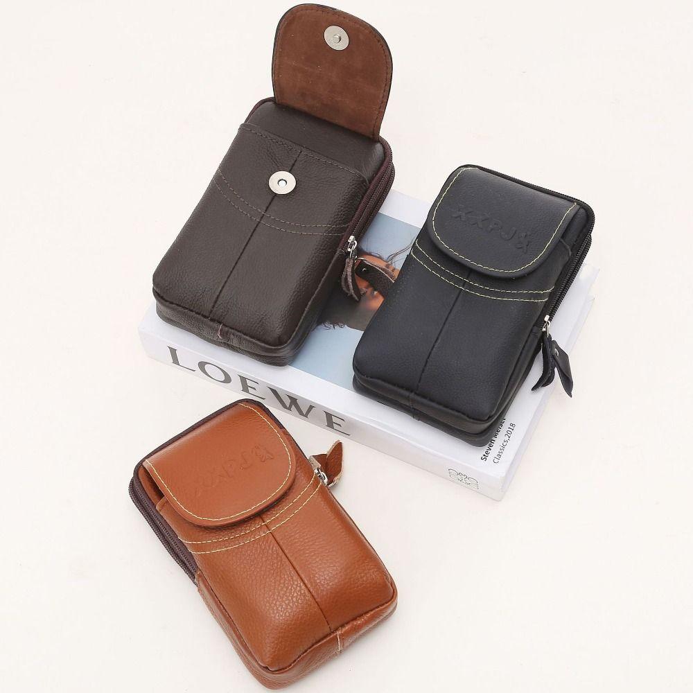 Vertical Outdoor Sports Waist Bag Cowhide Leather Phone Belt Hanging Pouch Outdoor Sports