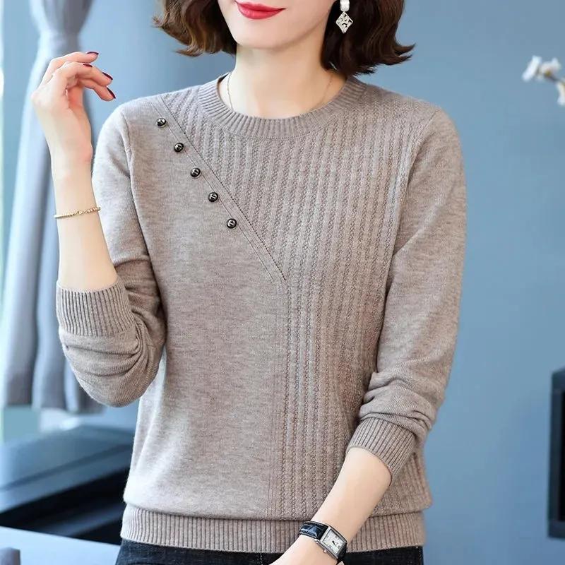 Damen Frühling und Herbst Locker Dünn Passender Innenstrickpullover Rundhals Überzieher Basisoberteil