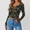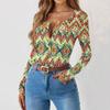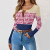 Damen Slim Bottom T-Shirt Mode Lässig Farbverlauf Druck Rundhals Pullover Langarm Top