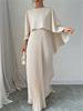 Ramadan-Kaftan mit Blumendruck und Rundhalsausschnitt, elegantes Maxikleid mit Fledermausärmeln und Schlitz, Damenbekleidung