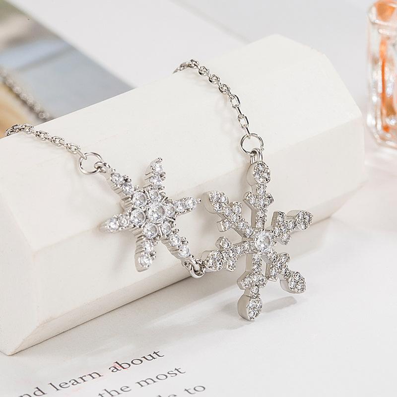 Ladies Fashion Crystal Snowflake Pendant Necklace Jewelry