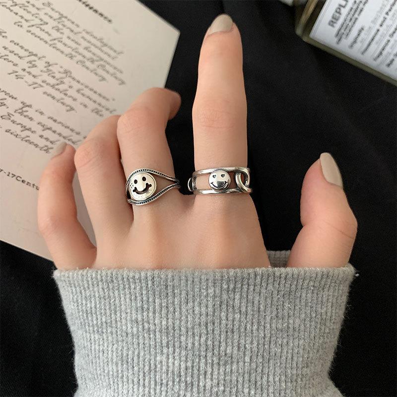 Designed with versatility in mind, this ring features an adjustable open design, ensuring a comfortable fit for any finger size. Whether you're dressing up for a festive celebration or simply wanting to elevate your everyday look, this ring is the ideal choice. Its chic Korean-style aesthetic blends seamlessly with various outfits, making it a must-have addition to any jewelry collection. The vintage smiley face design infuses a sense of joy and nostalgia, reminding us to embrace happiness in our lives.