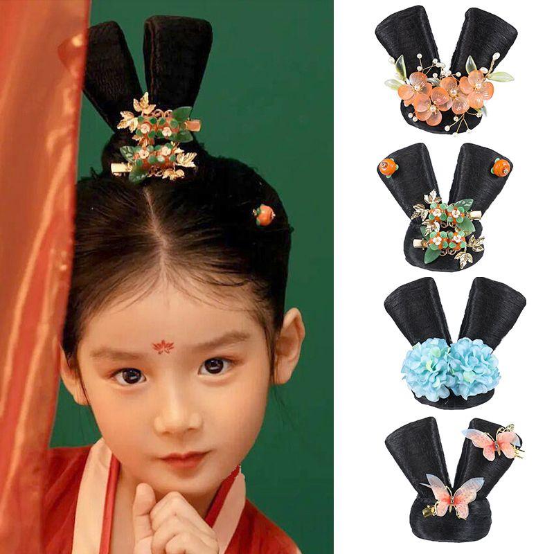 Children's Han Chinese Costume Chignon Ornament Cute Girl Tang Style Bun Mid-Autumn Festival Stage Performance Headdress Suit