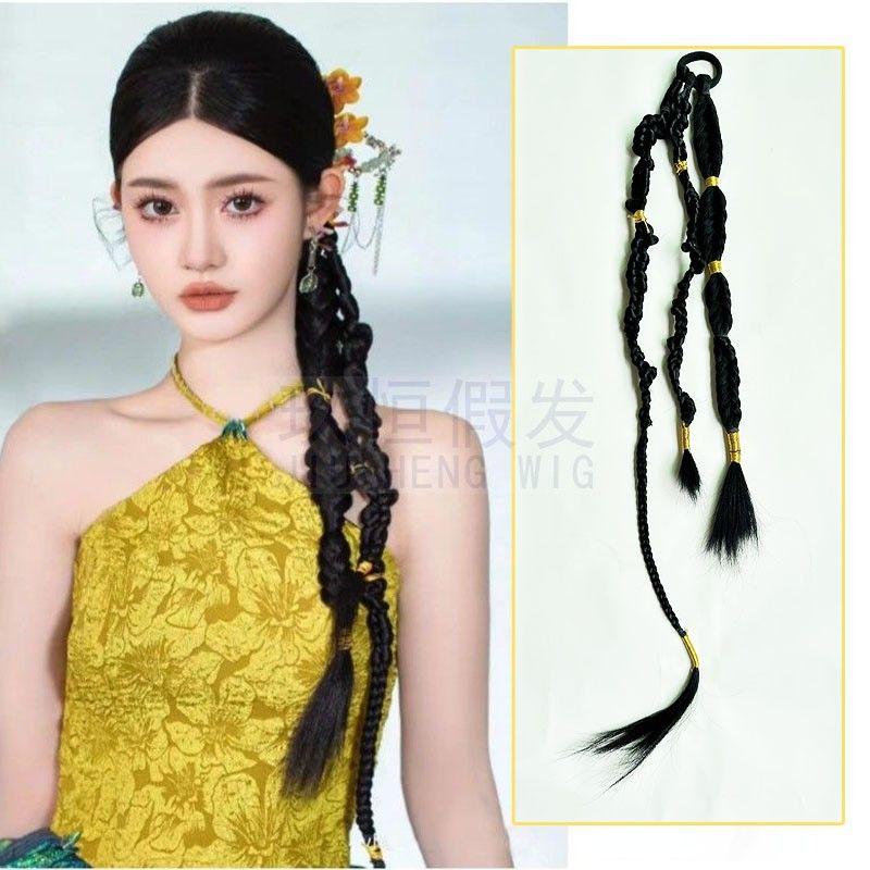 Wig New Chinese Style Female Ponytail Cable Stitch Long Braid New Chinese Twisted Gold Thread Braid Bridal Hairstyle Photography Dreadlocks