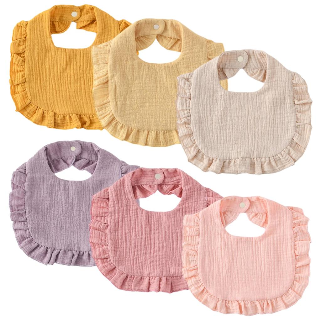 Frilled bib like a collar: A cute cotton baby bib with frills. The large size of the bib can hold even a lot of drool. It can also be used as an apron for newborns to prevent regurgitation of milk or for weaning meals.