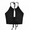 Sexy Tanktop Mittel Ausschnitt Riemen Push-Up Neckholder Crop Tops Damen Lässig Ärmellos Kurz Weste Camisole Schlauchtop Weiblich