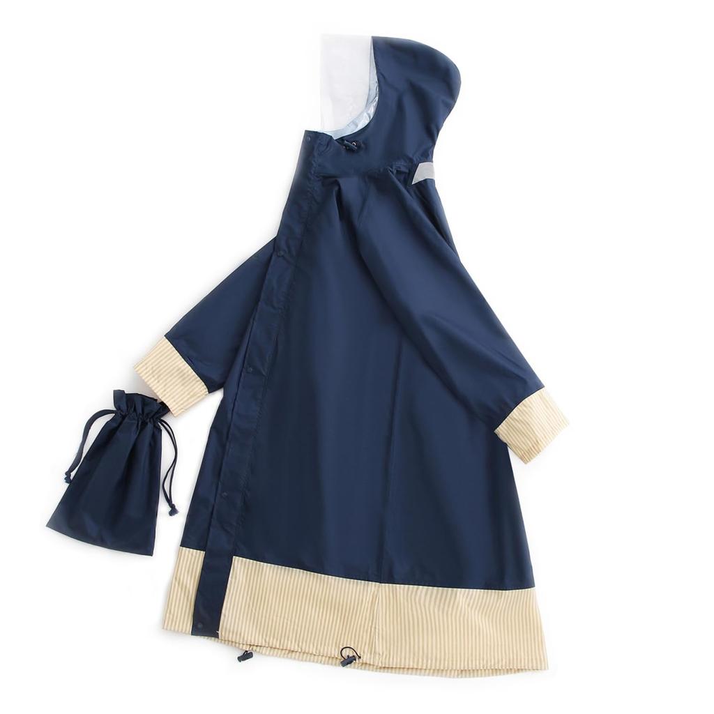 Langer Rucksack für Marine [YAMANMAN] Damen Regenmantel, Länge, Kompatibel, Pendeln, Schule, Fahrräder, Regenbekleidung,