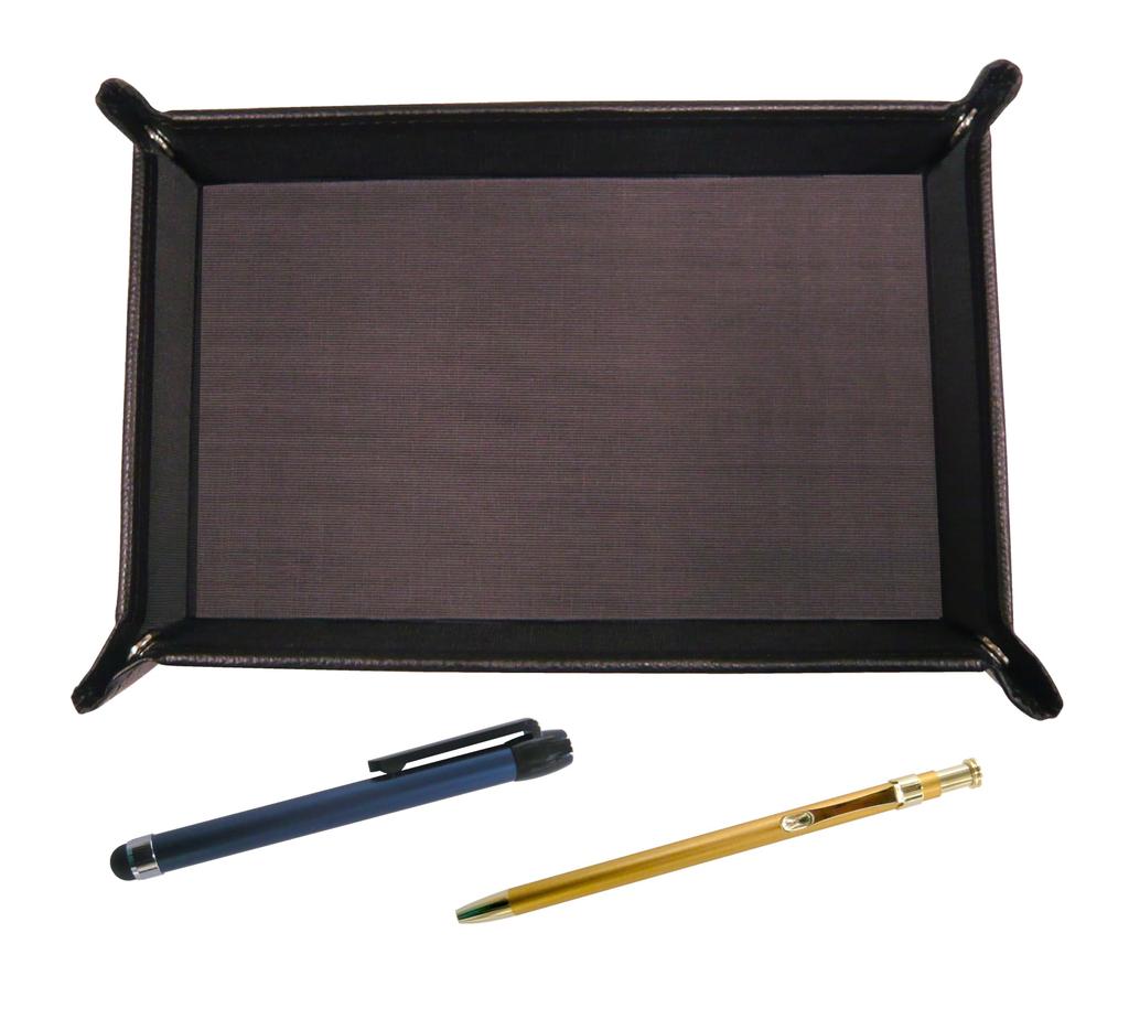 Grained chocolate color cowhide leather pen blue metal touch stick and slim 60 ballpoint pen gold set tray, TRATYO-ALL-SV60KBP