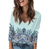 Modisches, lässiges Damen-Langarmtop mit Retro-Blumenmuster und V-Ausschnitt