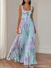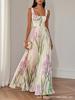 Damen Maxikleid mit Blumenmuster und Rüschensaum, Blaues und Grünes Blumenmuster, Elegantes A-Linien-Langkleid