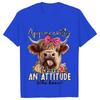 Highland Kuh Print T-Shirts für Frauen Attitude Design Damen T-Shirts Kurzarm O-Ausschnitt T-Shirt Lustige Cartoon Kleidung Frauen