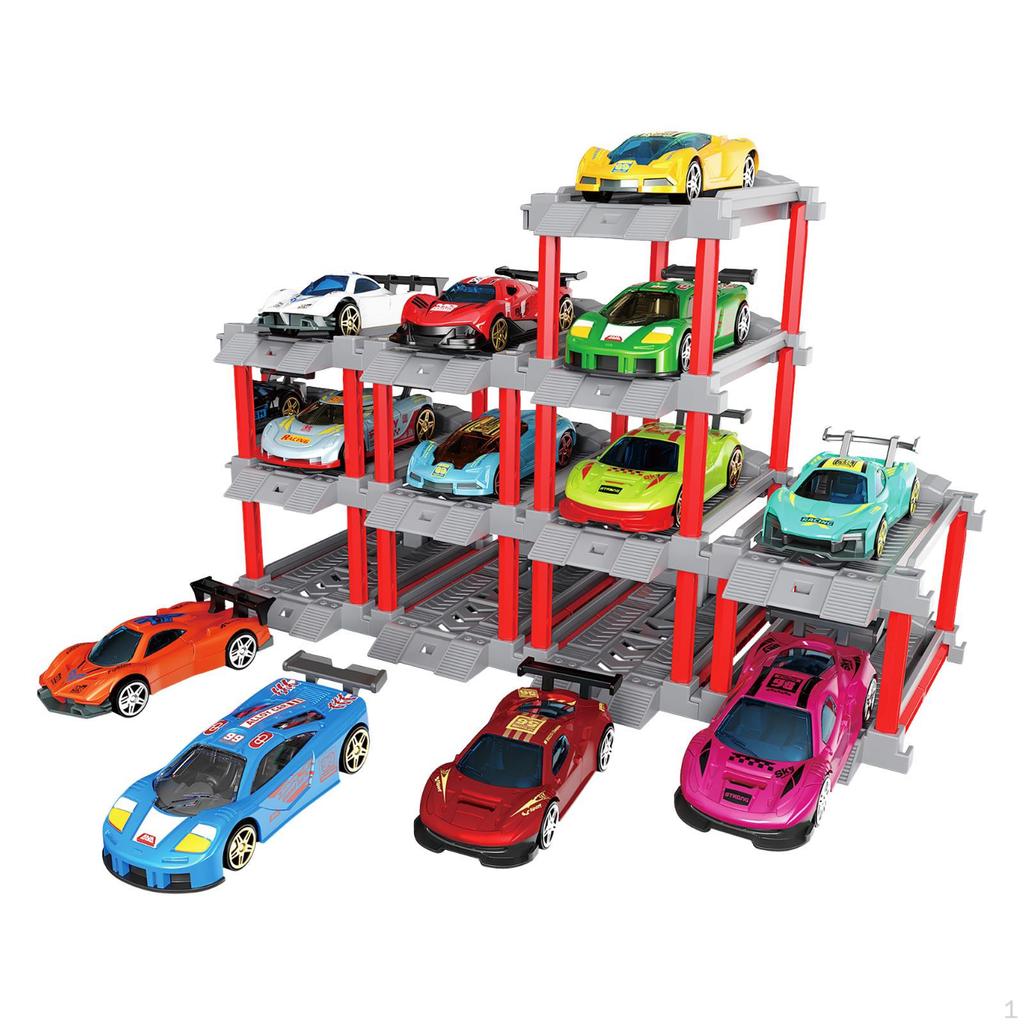 - 【Materials】: Diese Rückzugautos aus Legierung werden mit 12 Parkhausstrecken und 12 Legierungsautos geliefert.