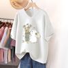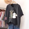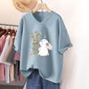 Kurzärmeliges T-Shirt, Locker sitzend, Schlankmachendes bedrucktes V-Ausschnitt-Top für Damen