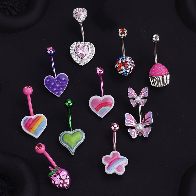 Sweet Dinosaur Navel Ring Zircon Heart Strawberry Belly Button Ring For Women Body Piercing Decor Vacation Leisure Beach Jewelry