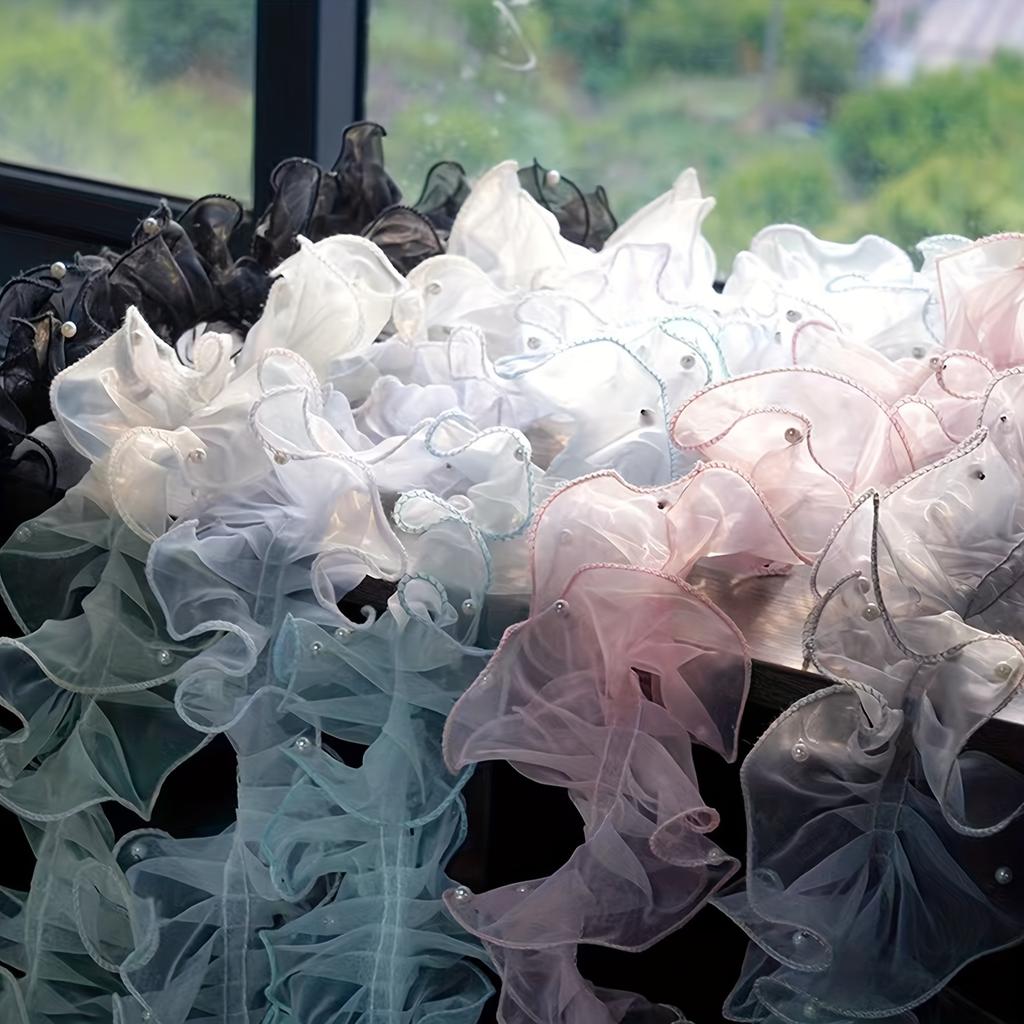 Schneegarn Spitzenband 1 Rolle 12cm Dicht Plissiert Perlenbesetzt Schneegarn Spitzenband Blumenverpackungsband Straußband Glänzendes Perlenwellenband 1M